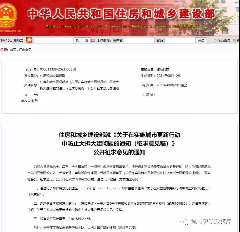 8月10日(昨天)住建部網(wǎng)站公布《關(guān)于在實(shí)施城市更新行動(dòng)中防止大拆大建問(wèn)題的通知(征求意見(jiàn)稿)》,釋放了收緊城市更新、防止大拆大建的政策信號(hào)。