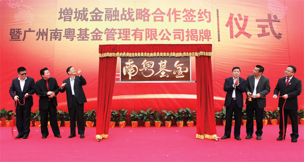 廣州市委常委、增城市委書記歐陽衛(wèi)民,增城市市長羅思源,廣州市金融工作局局長周建軍,湖南省岳陽市市委常委、常務(wù)副市長陳奇達(dá),廣東省金融辦副巡視員夏虹,湖南省移民局副局長童康寧,增城市副市長葉鴻,廣州南粵基金管理有限公司、廣州市城市建設(shè)投資集團(tuán)有限公司、廣州產(chǎn)業(yè)投資基金管理有限公司、建設(shè)銀行廣東省分行、廣州金融控股集團(tuán)有限公司、廣州農(nóng)商行、平安銀行廣州分行、中南控股集團(tuán)有限公司、廣東華興銀行總行、中信銀行廣州分行、興業(yè)銀行廣州分行等多家金融機(jī)構(gòu)、上市公司相關(guān)負(fù)責(zé)人,以及增城市相關(guān)部門負(fù)責(zé)人出席了儀式。儀式由增城市副市長鄧毛穎主持。