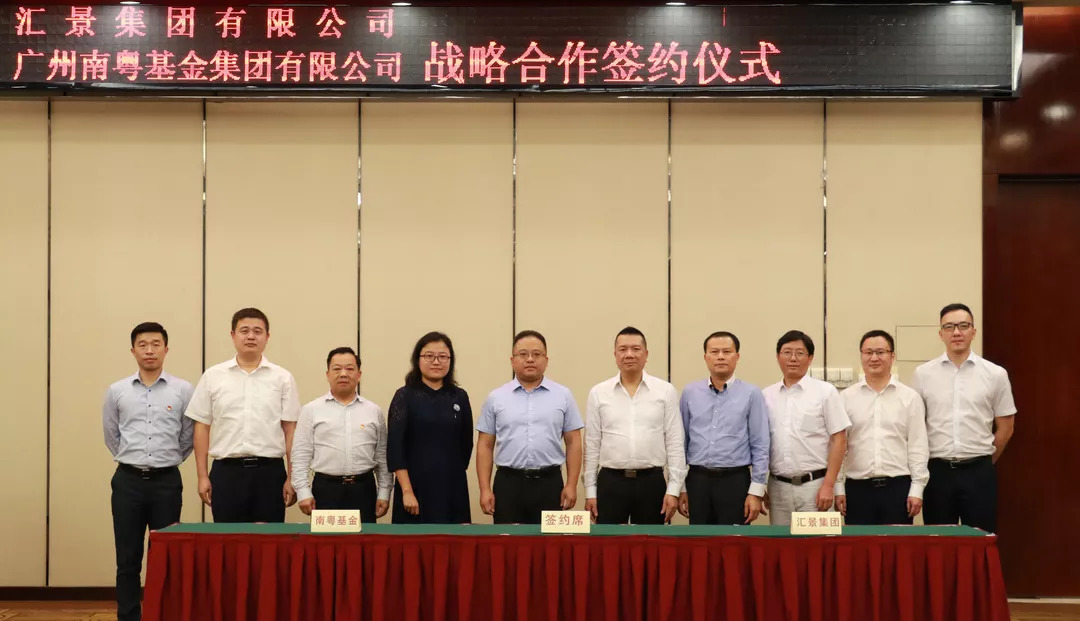 南粵基金集團(tuán)林濤董事長(左五)和匯景集團(tuán)倫瑞祥董事長(右五)等參加簽約儀式