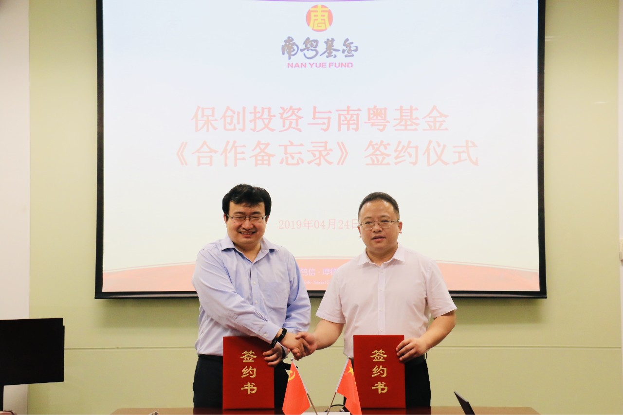 4月24日,廣州南粵基金集團有限公司(簡稱“南粵基金”)與保創(chuàng)投資發(fā)展有限公司(簡稱“保創(chuàng)投資”)在廣州舉行洽談并簽署合作備忘錄,雙方圍繞粵港澳大灣區(qū)創(chuàng)新發(fā)展,共同設(shè)立全球創(chuàng)新產(chǎn)業(yè)基金,深入推進“一帶一路”建設(shè)。南粵基金董事長林濤、保創(chuàng)投資總經(jīng)理趙凌志等出席活動。