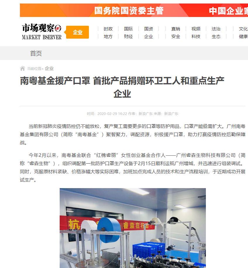 市場觀察|南粵基金援產(chǎn)口罩 首批產(chǎn)品捐贈環(huán)衛(wèi)工人和重點生產(chǎn)企業(yè)