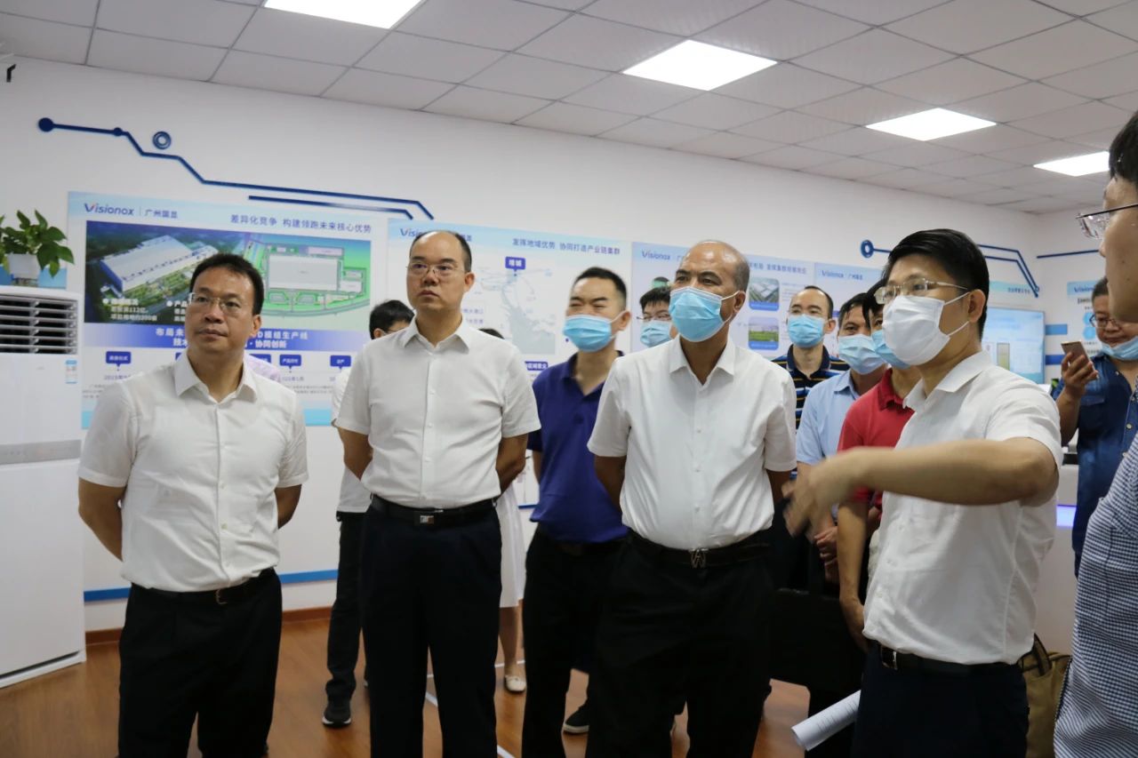 8月25日,廣東省自然資源廳副廳長(zhǎng)楊林安、廣州市工信局副局長(zhǎng)張建華一行,在增城區(qū)委常委、常務(wù)副區(qū)長(zhǎng)陳小華的陪同下,到廣州南粵基金集團(tuán)有限公司(簡(jiǎn)稱“南粵基金”)投資并提供綜合金融服務(wù)的廣州國(guó)顯科技有限公司(簡(jiǎn)稱“廣州國(guó)顯”)項(xiàng)目,開展穩(wěn)工業(yè)增長(zhǎng)服務(wù)督導(dǎo)工作。南粵基金總裁曾金賢等參加活動(dòng)。