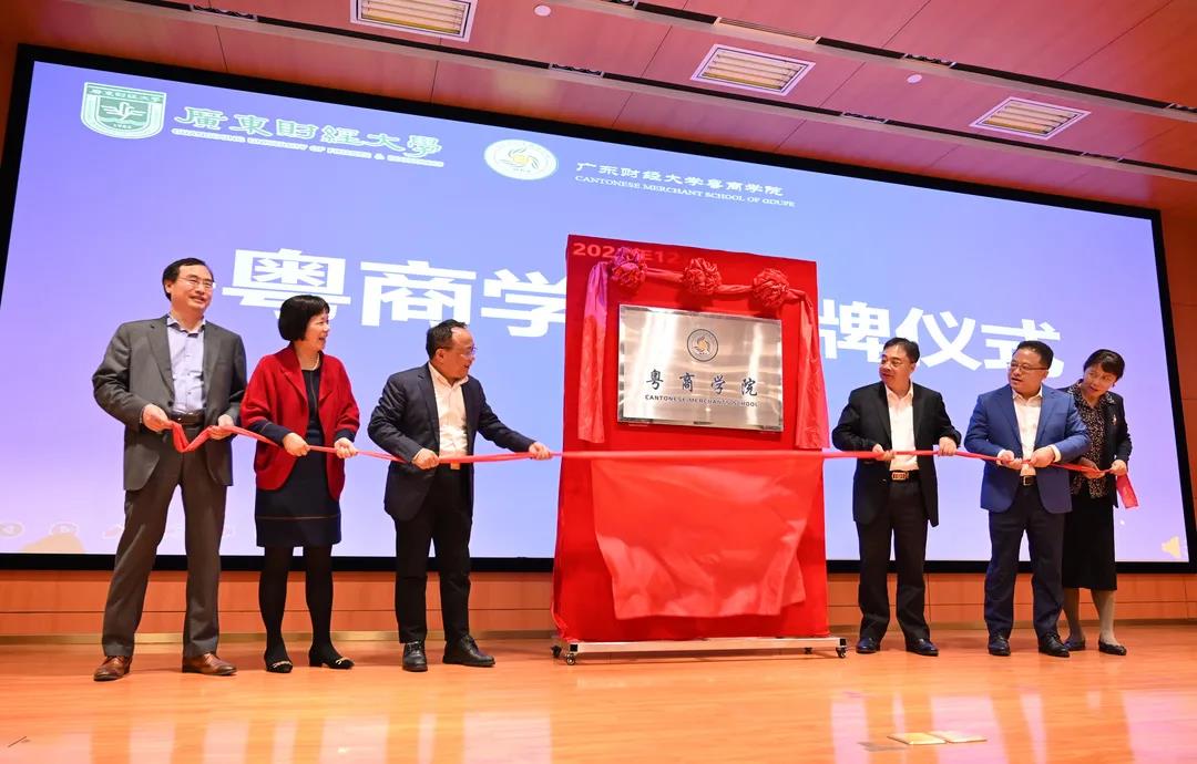 會上,粵商學(xué)院正式掛牌。鄭賢操書記、于海峰校長、林濤董事長、張艷梅顧問、廣財研究生院院長謝雄偉、MBA學(xué)院顧文靜副院長一同出席掛牌儀式。