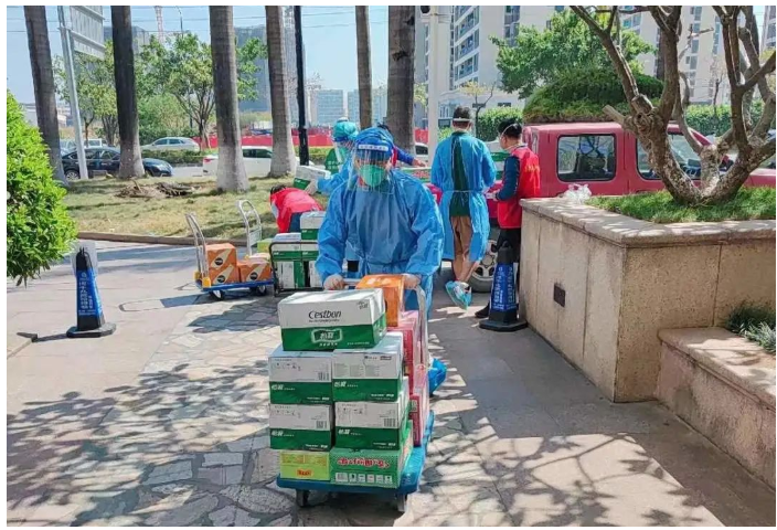 “阿伯,您開開門,大米來了”,小區(qū)封控第一天,突擊隊曹甜同志在掃樓排查時收到一名70多歲老人求助:家里的米缸已經見底。在深入了解老人實際困難后,曹甜同志立即聯(lián)系購買了一袋大米,當天送到了老人家門口。