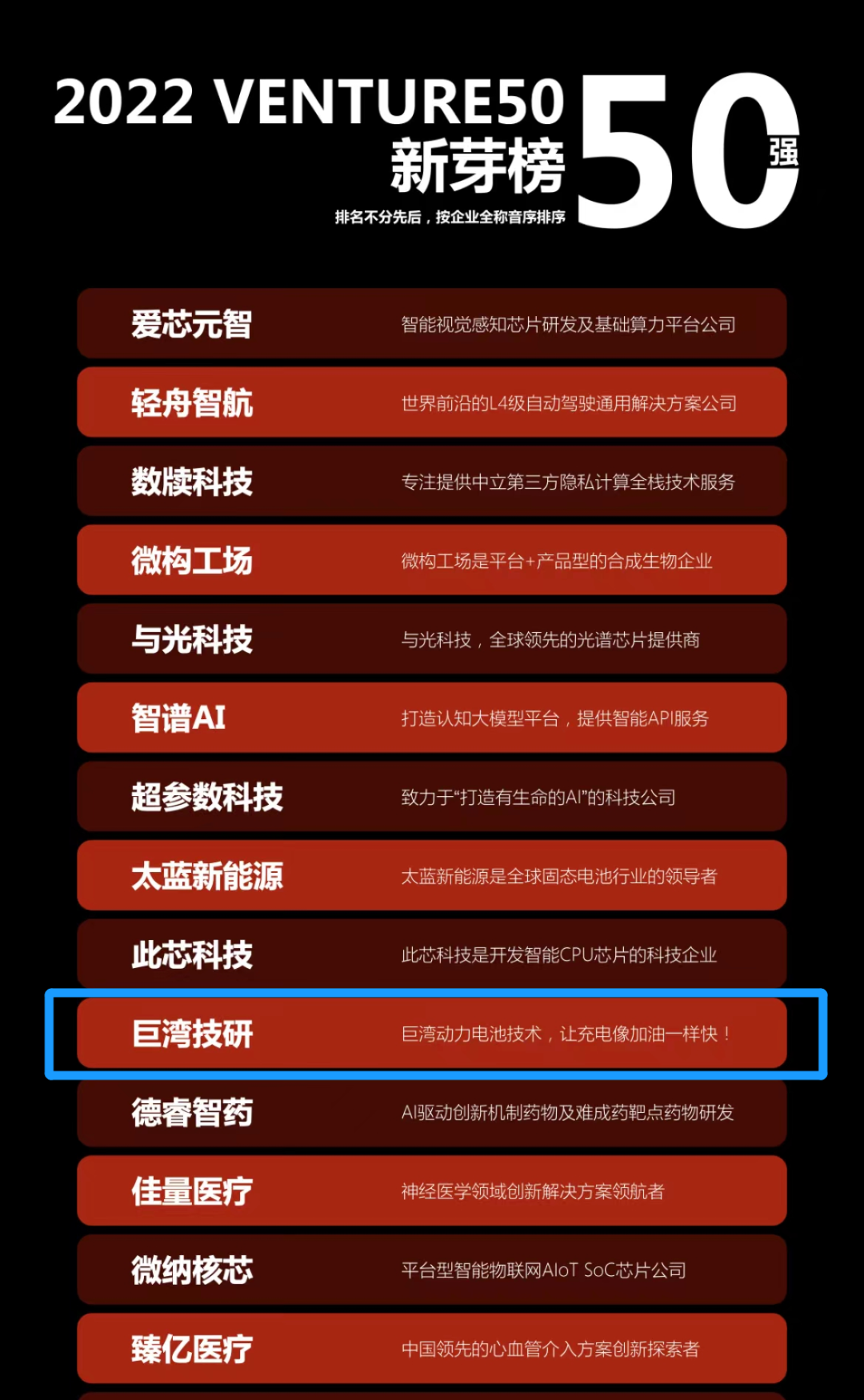 截至2022年10月統(tǒng)計,Venture50榜單累計參選企業(yè)70000+,幫助企業(yè)融資超過358億美元,近三年Venture50入榜企業(yè)后續(xù)融資率達(dá)61%,上市率約27.8%,積極促成創(chuàng)投支持產(chǎn)業(yè)落地、服務(wù)實體經(jīng)濟(jì),引導(dǎo)更多創(chuàng)投與創(chuàng)新力量推動發(fā)展,全方位為創(chuàng)業(yè)創(chuàng)新創(chuàng)造厚植土壤。巨灣技研榮登兩大榜單,是科技創(chuàng)新領(lǐng)域與資本市場對其強(qiáng)勁成長潛力的雙重認(rèn)可。