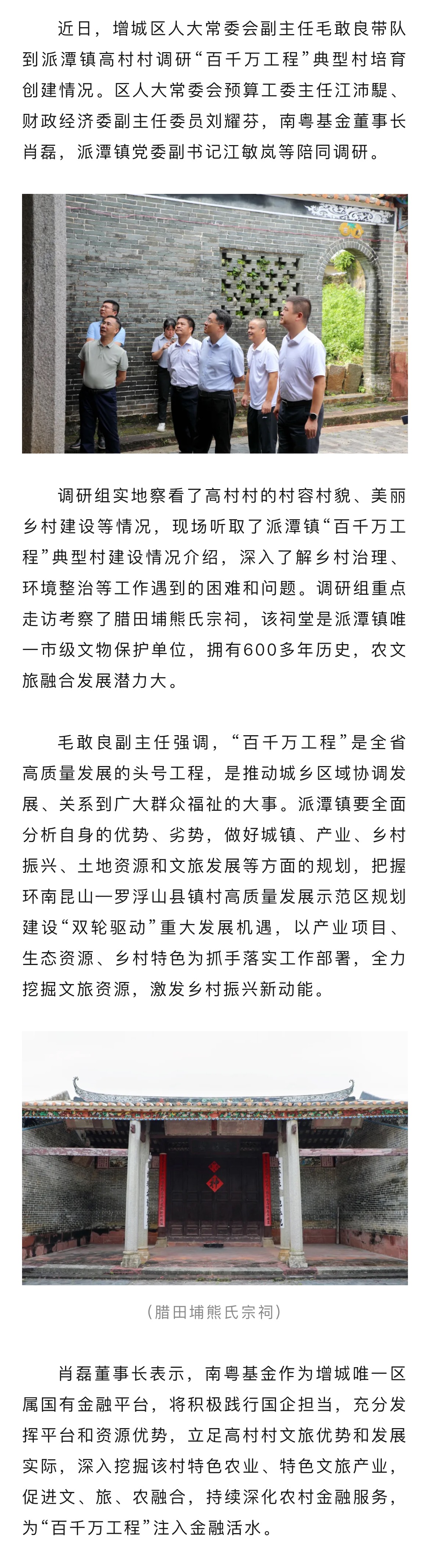 增城區(qū)人大常委會副主任毛敢良帶隊南粵基金開展“百千萬工程”典型村調(diào)研