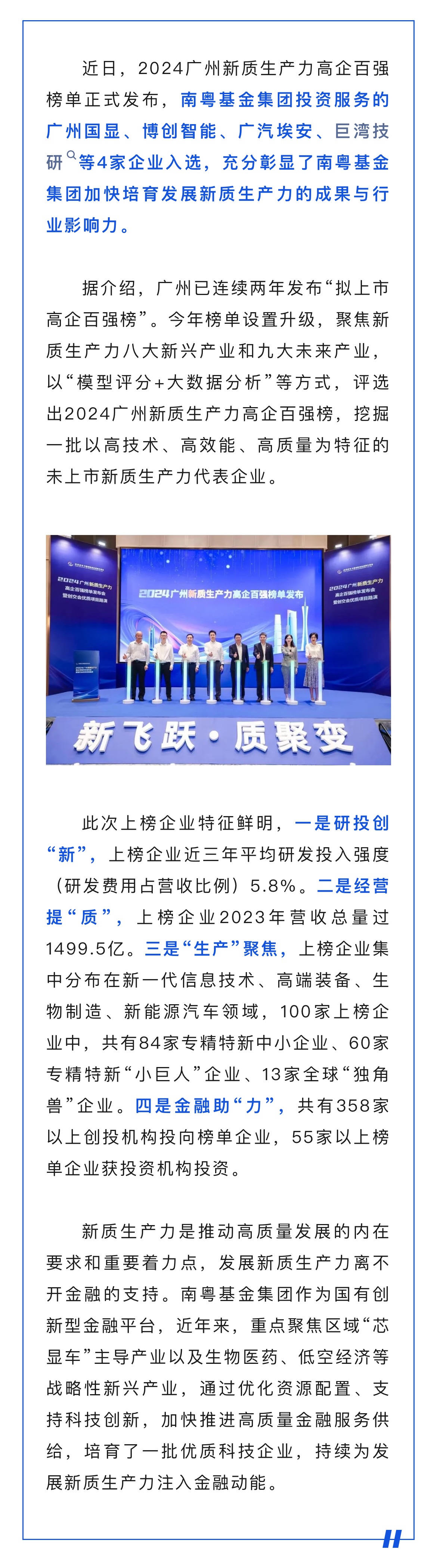 廣州高企百強發(fā)榜 南粵基金投資服務4家企業(yè)入選