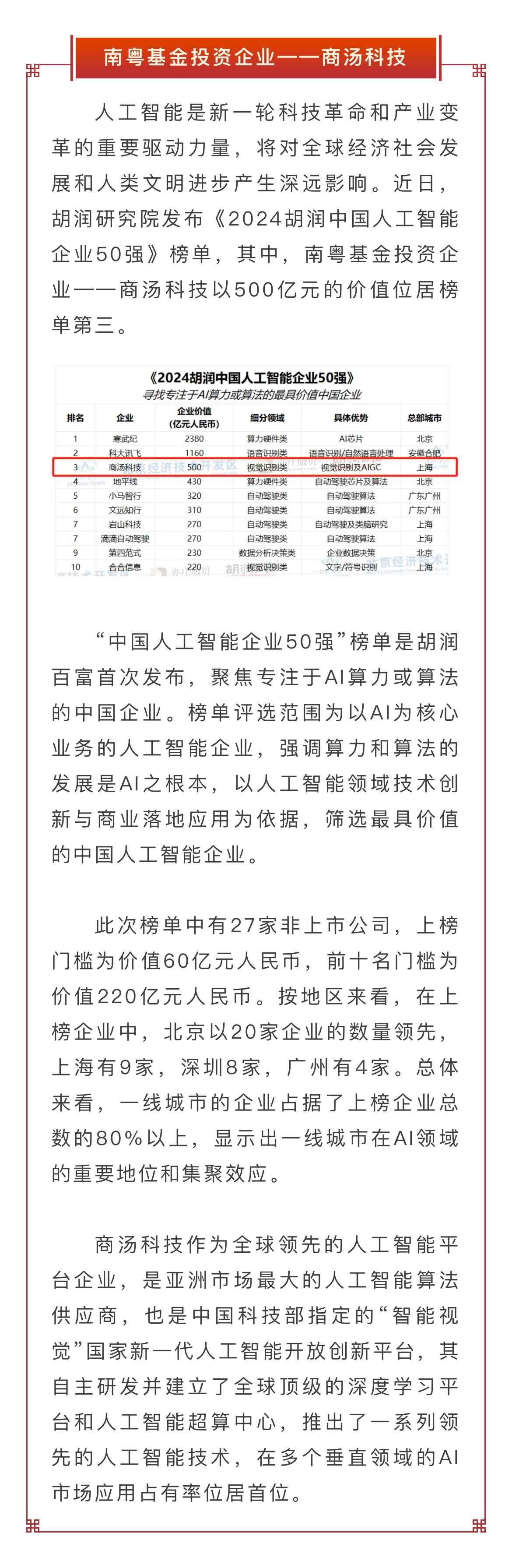探花!南粵基金投資企業(yè)榮登“胡潤中國人工智能企業(yè)50強”