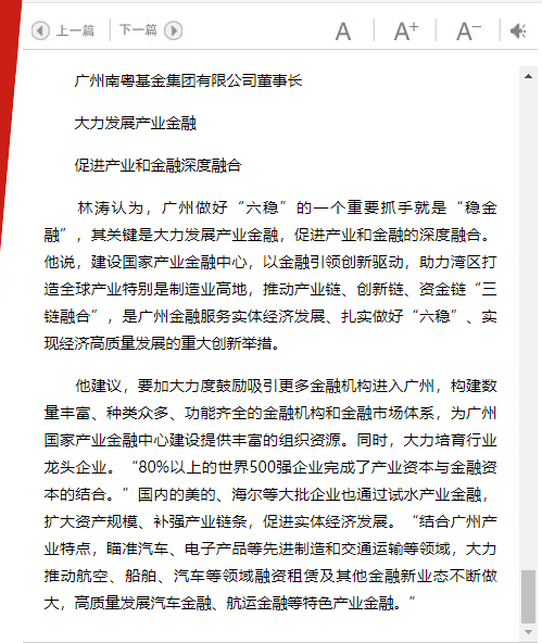 廣州日?qǐng)?bào)|大力發(fā)展產(chǎn)業(yè)金融 促進(jìn)產(chǎn)業(yè)和金融深度融合