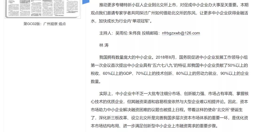 南方日報 | 林濤會長署名文章:營造資本生態(tài)圈,讓中小企業(yè)辦成大事