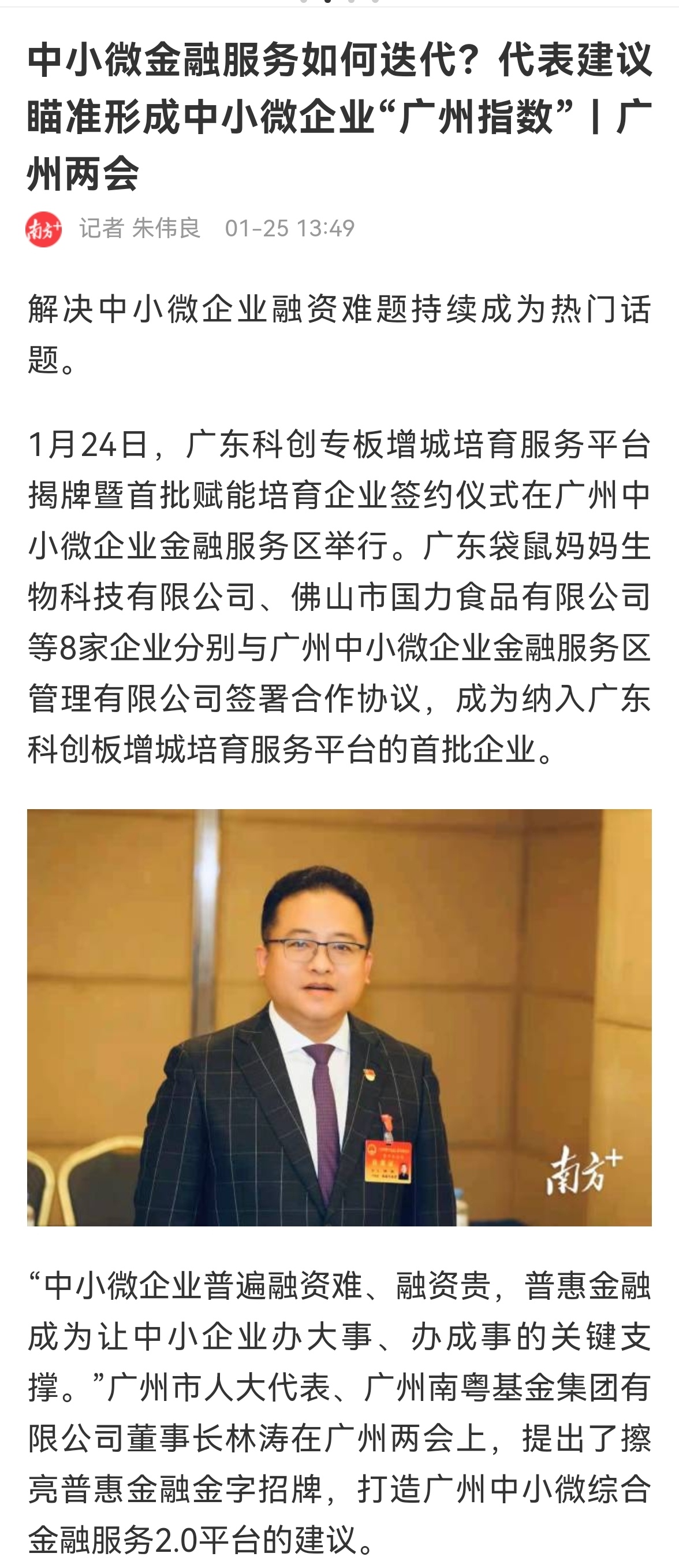 《南方日報》:林濤代表建議瞄準形成中小微企業(yè)“廣州指數(shù)”