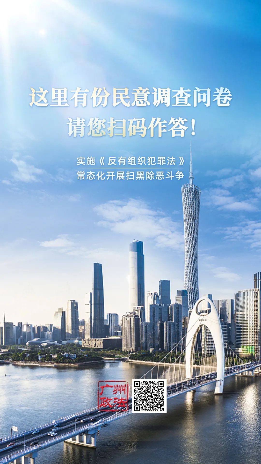 根據(jù)中央和省的部署要求,廣州市正在深入推進(jìn)常態(tài)化開展掃黑除惡斗爭。為了解掌握我市群眾對常態(tài)化掃黑除惡斗爭的知曉率、滿意率及安全感提升率,廣泛聽取民意,征求意見建議,進(jìn)一步改進(jìn)全市常態(tài)化開展掃黑除惡斗爭工作,特進(jìn)行此調(diào)查。