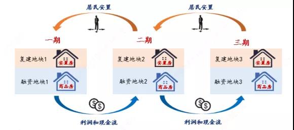 城市更新項目一般通過滾動開發(fā)模式平衡資金。部分安置、部分出售、分期投入、滾動開發(fā)是城市更新項目的基本思路。城市更新項目一般以安置區(qū)作為啟動,安置部分拆遷戶,剩余房產(chǎn)出售,產(chǎn)生利潤,滾動進(jìn)入下一期的開發(fā)成本,可較好的緩解實施主體資金壓力。