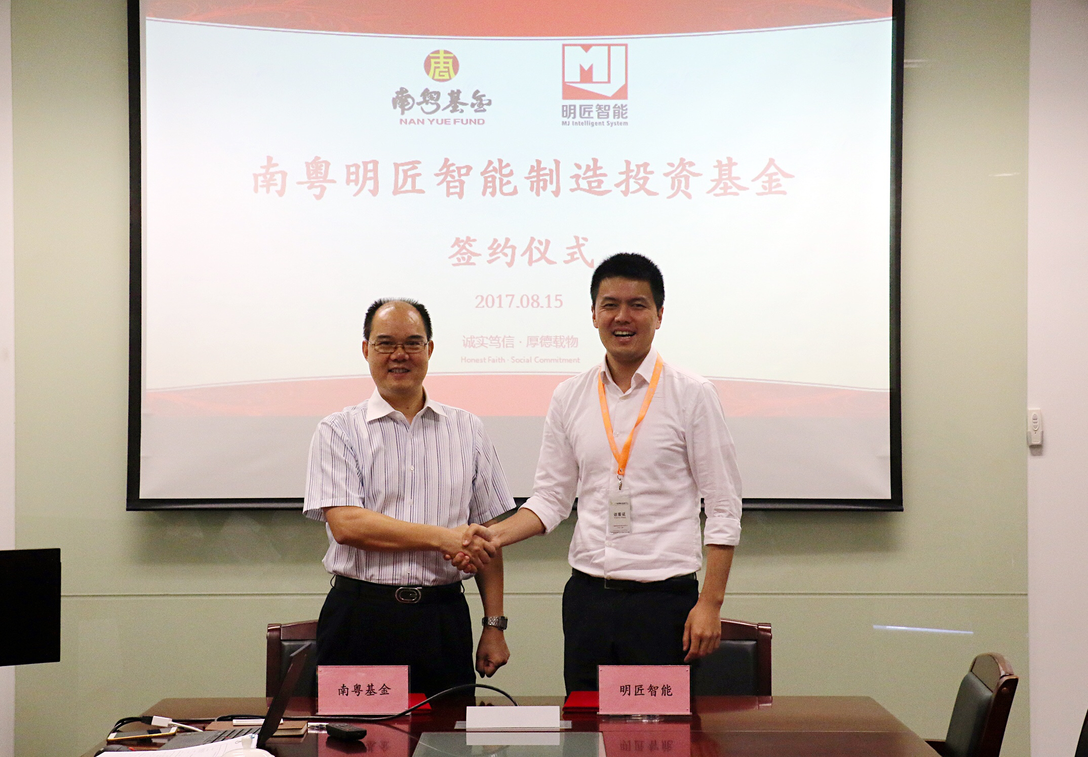 8月15日上午,廣州南粵基金集團(tuán)有限公司(以下簡(jiǎn)稱“南粵基金”)與上海明匠智能系統(tǒng)有限公司(以下簡(jiǎn)稱“明匠智能”)在廣州國(guó)際金融中心共同簽署基金投資協(xié)議。南粵基金集團(tuán)總裁曾金賢、明匠智能公司董事長(zhǎng)陳俊等領(lǐng)導(dǎo)出席本次簽約儀式。
