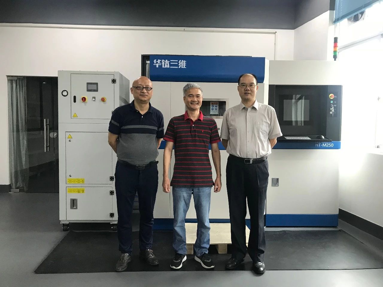 (曾金賢總裁回訪華鈦三維,右:南粵基金曾金賢總裁,中:華鈦三維創(chuàng)始人朱獻(xiàn)文)