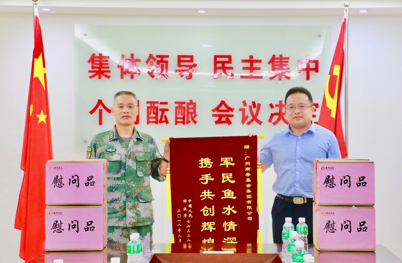 76328部隊(duì)主任左平生介紹了部隊(duì)情況,對南粵基金集團(tuán)冒著酷暑前來慰問表示感謝,并向南粵基金集團(tuán)贈送錦旗。 林濤董事長表示,76328部隊(duì)為國家經(jīng)濟(jì)建設(shè)、社會穩(wěn)定等提供了堅(jiān)強(qiáng)保障,希望以后能夠進(jìn)一步加強(qiáng)溝通交流,密切軍企關(guān)系,更好更直接地向部隊(duì)學(xué)習(xí),尤其要學(xué)習(xí)部隊(duì)忠誠奉獻(xiàn)、正氣凜然、整齊劃一、執(zhí)行有力、保障到位的優(yōu)良作風(fēng)。林濤董事長指出,企業(yè)也像一支軍隊(duì),嚴(yán)格內(nèi)部管理,加強(qiáng)作風(fēng)建設(shè),才能凝聚力量,形成強(qiáng)大的戰(zhàn)斗力,做到無堅(jiān)不摧、無往不勝。 集團(tuán)部分高管、中層干部參加了走訪慰問。