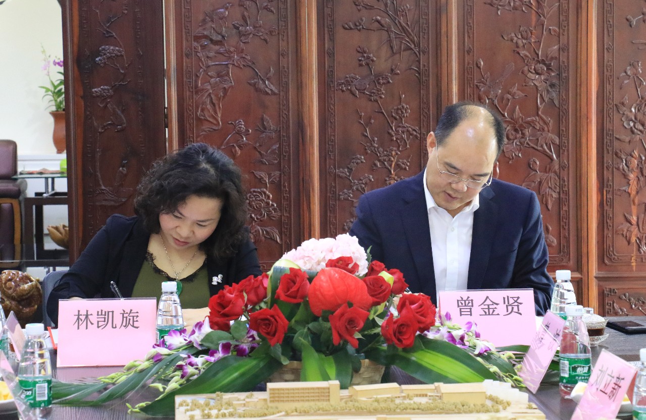 南粵基金曾金賢總裁(右)與燁龍集團(tuán)林凱旋總裁(左)簽訂合作協(xié)議