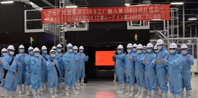 7月31日,超視堺第10.5代全生態(tài)產(chǎn)業(yè)園(簡(jiǎn)稱“超視堺8K”)生產(chǎn)線首片65寸產(chǎn)品點(diǎn)燈儀式在偏貼工廠舉行。超視堺董事長(zhǎng)羅政浩表示:“今年2月14日,園區(qū)首臺(tái)核心設(shè)備8K高精密曝光機(jī),已進(jìn)駐陣列工廠。經(jīng)過(guò)168天的日夜奮戰(zhàn),首片高分辨率65寸顯示屏在今天正式點(diǎn)亮,這意味著廣州平板顯示產(chǎn)業(yè)將進(jìn)入新的發(fā)展階段”。