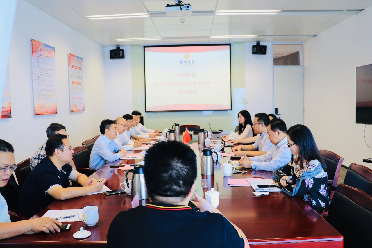 10月17日,湖南衡陽(yáng)國(guó)家高新技術(shù)產(chǎn)業(yè)開發(fā)區(qū)(簡(jiǎn)稱“衡陽(yáng)高新區(qū)”)管委會(huì)主任歐杏、衡陽(yáng)高新投資有限公司董事長(zhǎng)朱章金一行到訪廣州南粵基金集團(tuán)有限公司(簡(jiǎn)稱“南粵基金”)。南粵基金董事長(zhǎng)林濤會(huì)見了來(lái)訪的客人。雙方就進(jìn)一步深化交流合作舉行會(huì)談。