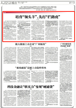日前,廣州啟動“領(lǐng)頭羊”行動計劃,提出聚焦IAB、NEM、5G等戰(zhàn)略性新興產(chǎn)業(yè)和汽車、消費品工業(yè)等傳統(tǒng)優(yōu)勢產(chǎn)業(yè),爭取用3年時間推動新增境內(nèi)外上市公司60家。如何推動更多優(yōu)質(zhì)企業(yè)登陸資本市場?廣州市人大代表、廣州南粵基金集團有限公司(簡稱“南粵基金”)董事長林濤受南方日報之邀專題撰文進行探討,為提升資本市場“廣州板塊”的知名度和影響力提供南粵方案。