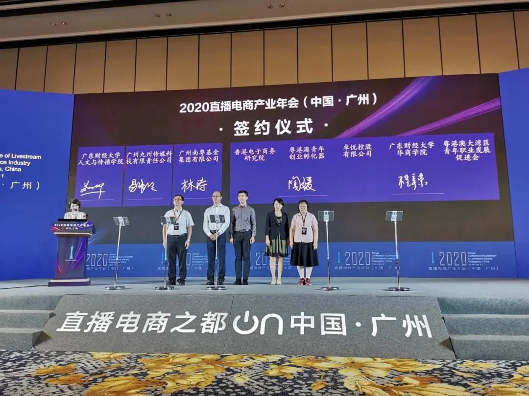 本屆年會(huì)上,“政校企”各方簽署了20余項(xiàng)合作備忘錄,內(nèi)容涵蓋電商平臺(tái)戰(zhàn)略合作、全產(chǎn)業(yè)鏈生態(tài)體系共建、直播人才高技能培養(yǎng)、青穗眾創(chuàng)扶持等項(xiàng)目。其中,廣州南粵基金集團(tuán)有限公司(簡(jiǎn)稱“南粵基金”)與廣東財(cái)經(jīng)大學(xué)人文與傳播學(xué)院、九州傳媒進(jìn)行校企合作簽約。三方以《粵港澳大灣區(qū)發(fā)展規(guī)劃綱要》、《廣州市直播電商發(fā)展行動(dòng)方案(2020-2022年)》為指導(dǎo),以校政行企深度合作、多元協(xié)同創(chuàng)新、產(chǎn)學(xué)研創(chuàng)聯(lián)動(dòng)為基本路徑,整合各方優(yōu)質(zhì)資源力量、創(chuàng)新高校育人育才機(jī)制,在協(xié)同共建南粵傳媒產(chǎn)業(yè)學(xué)院等方面開展戰(zhàn)略合作,從產(chǎn)業(yè)、金融等多個(gè)維度助力大學(xué)生創(chuàng)新創(chuàng)業(yè),為粵港澳大灣區(qū)電商直播產(chǎn)業(yè)發(fā)展提供高級(jí)人才支持和高校智力服務(wù)。