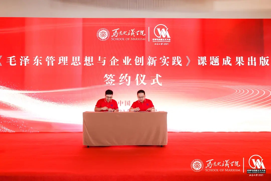 7月17-7月18日,第三屆世界馬克思主義大會(huì)在北京大學(xué)召開(kāi)。期間,南粵基金與北京大學(xué)毛澤東管理思想高級(jí)研究班(簡(jiǎn)稱“毛管班”)聯(lián)合課題成果——《毛澤東管理思想與企業(yè)創(chuàng)新實(shí)踐》出版簽約儀式正式舉行。毛管班建設(shè)委員會(huì)常務(wù)理事、毛管八班班長(zhǎng)、南粵基金董事長(zhǎng)林濤,與人民出版社責(zé)任編輯、讀書會(huì)辦公室負(fù)責(zé)人劉江波代表雙方簽約。