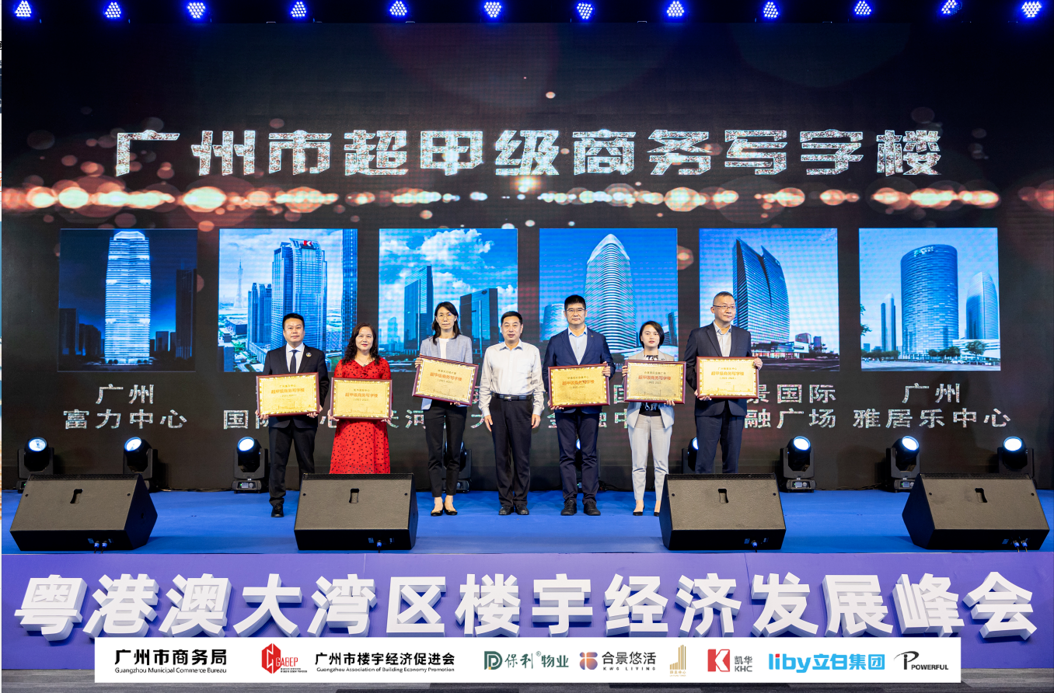 在峰會(huì)授牌儀式上,廣州市政協(xié)副主席、民革廣州市委會(huì)主委于欣偉、廣州市政府副秘書(shū)長(zhǎng)高裕躍、廣州市商務(wù)局副局長(zhǎng)魏敏等領(lǐng)導(dǎo)為獲評(píng)樓宇授牌。