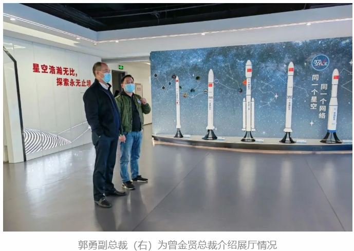 曾金賢總裁實(shí)地考察了國星宇航展廳、衛(wèi)星生產(chǎn)區(qū)等,詳細(xì)了解其發(fā)展歷程、衛(wèi)星研發(fā)、應(yīng)用能力以及衛(wèi)星互聯(lián)網(wǎng)產(chǎn)品體系等情況,深入交流磋商相關(guān)合作方案。