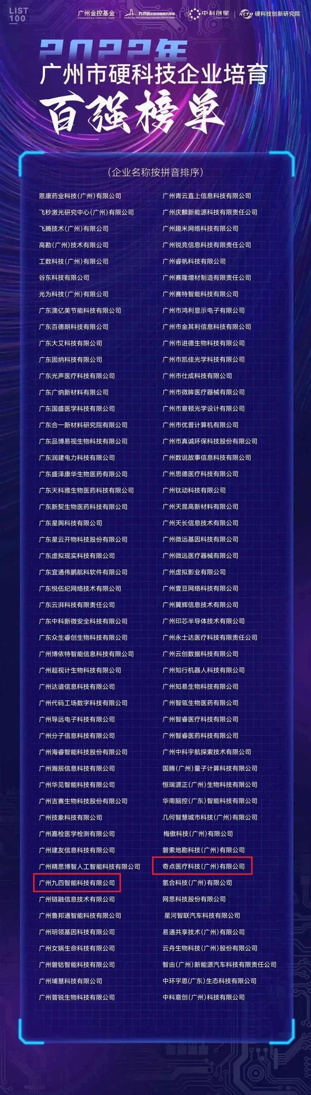 2022年8月,廣州市科學(xué)技術(shù)局主辦開展了硬科技企業(yè)培育行動,該項行動重點(diǎn)挖掘在穗高校、科研院所、新型研發(fā)機(jī)構(gòu)和孵化載體科研成果轉(zhuǎn)化形成的優(yōu)秀硬科技企業(yè),按照扶早、扶小的原則,依據(jù)技術(shù)關(guān)鍵性、技術(shù)原創(chuàng)性說明以及企業(yè)的經(jīng)營狀況、團(tuán)隊情況、專利數(shù)量等定性或定量指標(biāo),遴選了100家發(fā)展態(tài)勢良好、爆發(fā)性增長潛力強(qiáng)的企業(yè),最終評出“2022年廣州市硬科技企業(yè)培育百強(qiáng)榜單”。