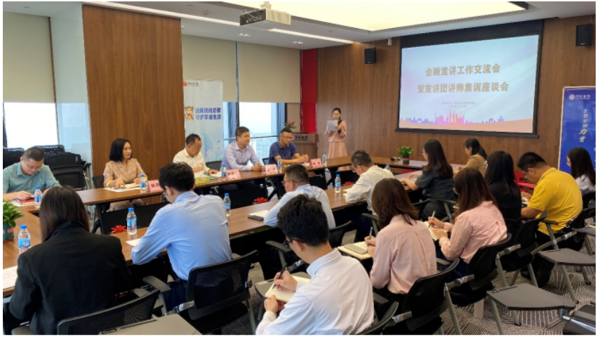 為全面提升普惠金融宣講團講師的專業(yè)素養(yǎng)和宣講水平,提高增城區(qū)金融宣講工作效率,10月18日下午,增城普惠金融促進會(簡稱“普促會”)在中信證券增城營業(yè)部召開金融宣講工作交流會暨宣講團講師集訓座談會,增城區(qū)發(fā)改局四級調(diào)研員林利,普促會會長、南粵基金集團董事長肖磊、普促會執(zhí)行會長陳曉光,校方代表廣州華商學院保衛(wèi)處處長楊燕平,以及來自農(nóng)業(yè)銀行增城支行、興業(yè)銀行增城支行、平安產(chǎn)險增城支公司、人保財險增城支公司、中國人壽保險增城支公司、中信證券增城營業(yè)部等20多名金融機構(gòu)業(yè)務精英、宣講團成員參會。