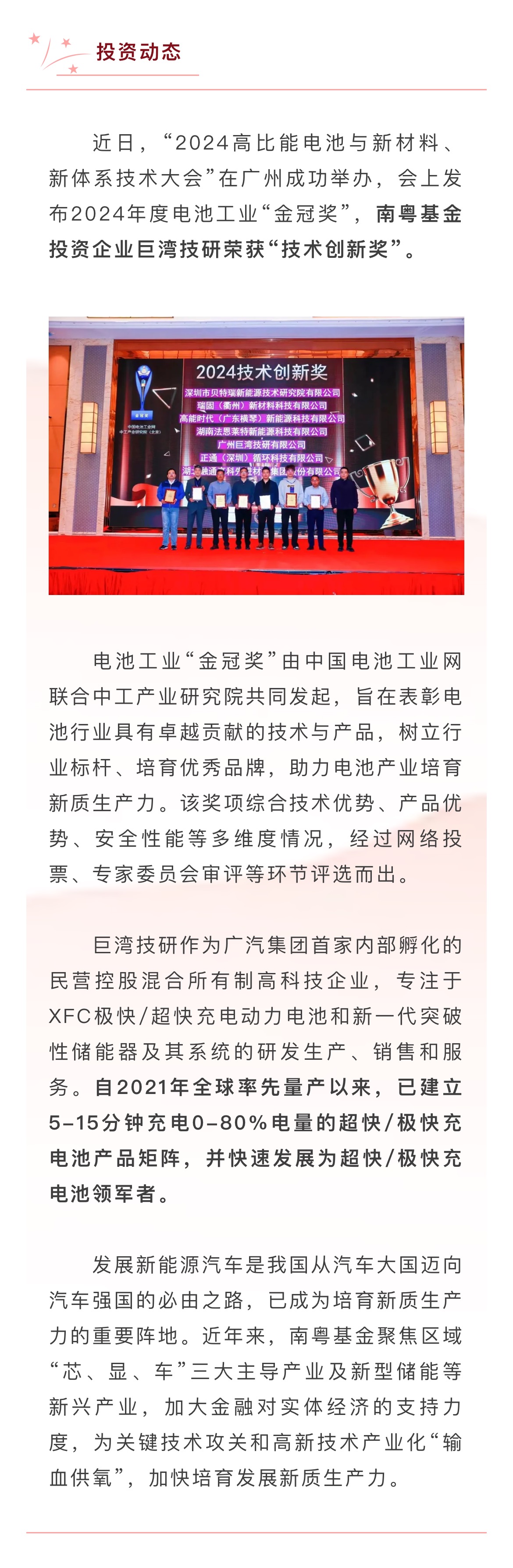 投資動(dòng)態(tài) | 南粵基金投資企業(yè)榮獲“金冠獎(jiǎng)”技術(shù)創(chuàng)新獎(jiǎng)