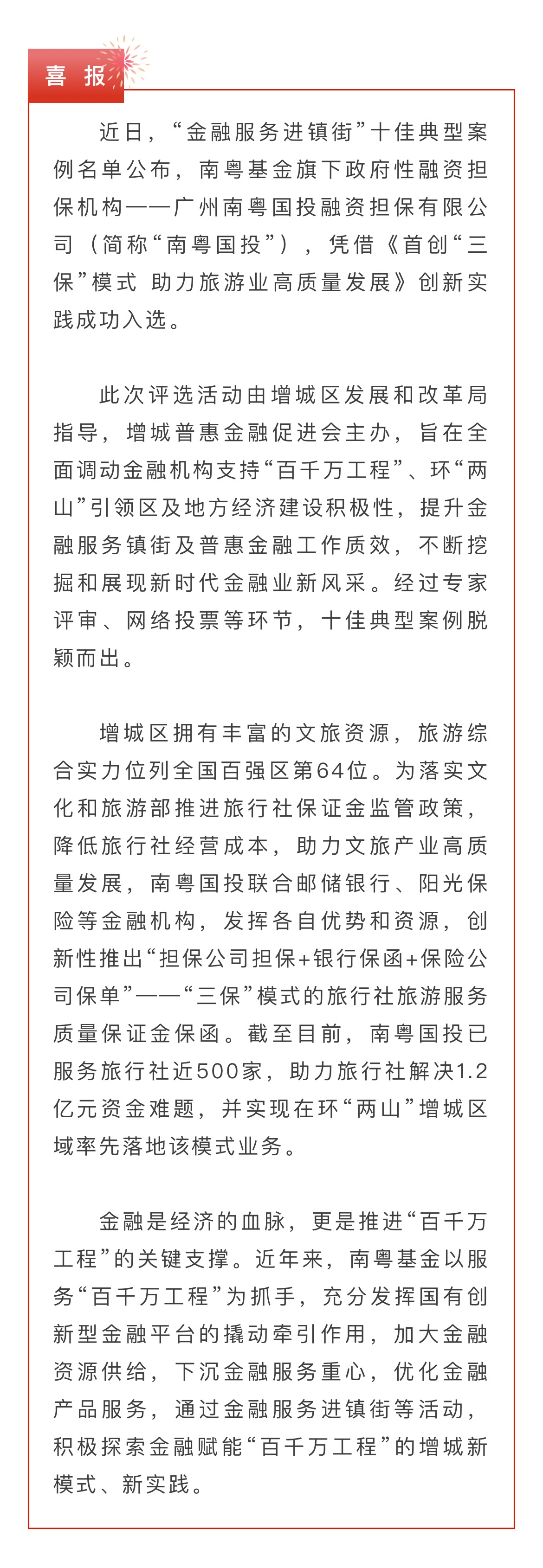 十佳!南粵國投入選“金融服務(wù)進鎮(zhèn)街”典型案例