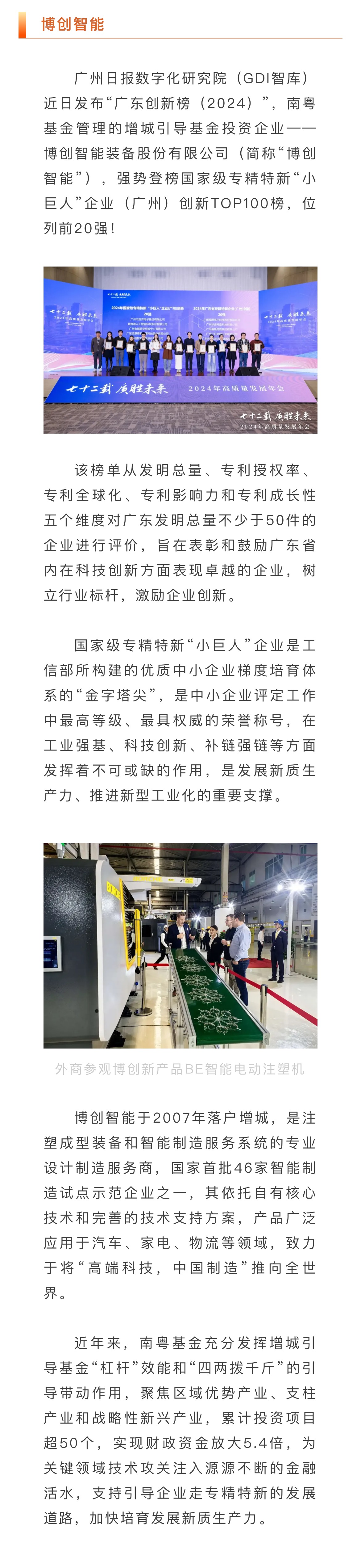 國家級專精特新“小巨人”創(chuàng)新20強(qiáng)!增城引導(dǎo)基金投資企業(yè)上榜