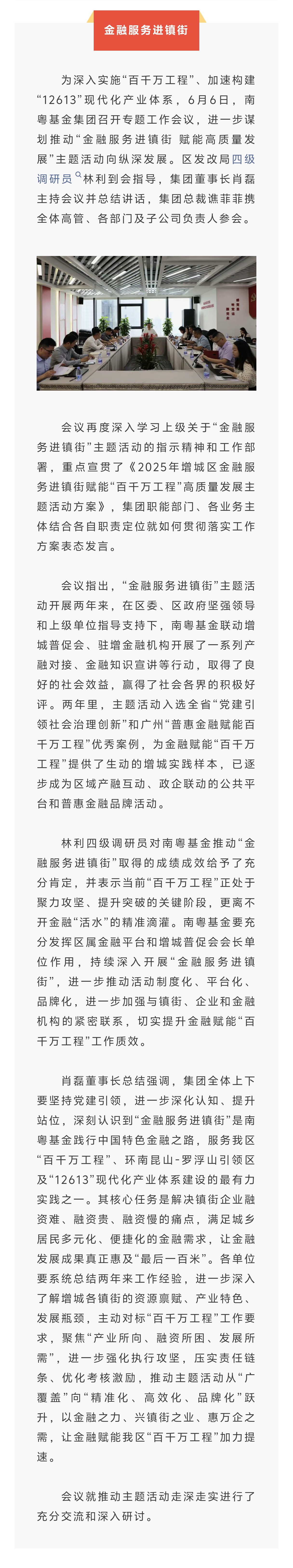 深入用力 扎實(shí)推進(jìn) 久久為功——南粵基金集團(tuán)召開(kāi)“金融服務(wù)進(jìn)鎮(zhèn)街”專題工作會(huì)