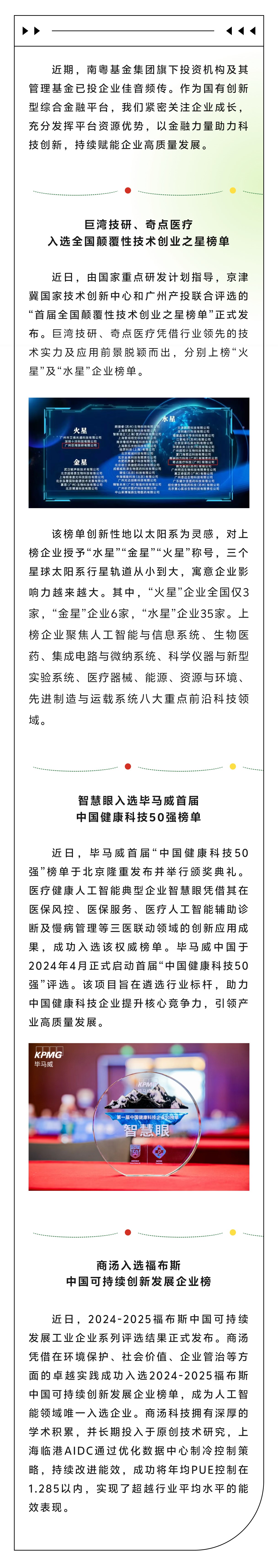 南粵基金,與企業(yè)共成長 | 全國顛覆性技術(shù)創(chuàng)業(yè)之星、畢馬威首屆中國健康科技50強(qiáng)……