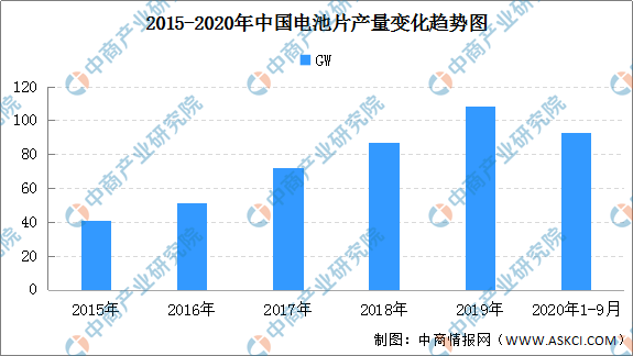 近年來新發(fā)展的PERC、MWT、黑硅、切半、MBB等技術(shù)不斷推高轉(zhuǎn)換效率的同時降低成本,支撐了晶硅電池市場競爭力的持續(xù)提升。2019年,盡管在政策調(diào)整下,我國光伏應(yīng)用市場有所下滑,但受益于海外市場增長,我國光伏各環(huán)節(jié)產(chǎn)業(yè)規(guī)模依舊保持快速增長勢頭。截至2019年底,我國電池片產(chǎn)量108.6GW,同比增長27.7%。