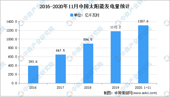 太陽能是一種可再生能源,指太陽的熱輻射能,主要表現(xiàn)就是常說的太陽光線,一般用作發(fā)電或者為熱水器提供能源。太陽能的利用有光熱轉(zhuǎn)換和光電轉(zhuǎn)換兩種方式,目前,太陽能光伏發(fā)電系統(tǒng)是主要的應(yīng)用。近年來,我國太陽能發(fā)電量持續(xù)提高。數(shù)據(jù)顯示,2019年我國太陽能發(fā)電量為1172.2億千瓦時。2020年1-11月我國太陽能發(fā)電量累計達1307.6億千瓦時,同比增長8.1%。