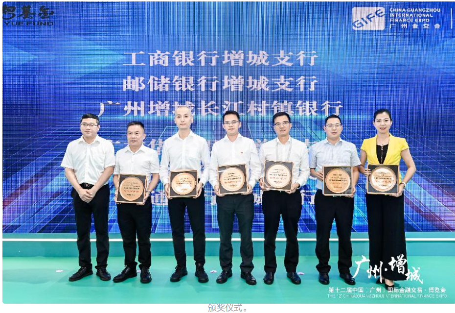 開館當(dāng)天,增城展館現(xiàn)場(chǎng)分別向榮獲金融助力增城經(jīng)濟(jì)高質(zhì)量發(fā)展突出貢獻(xiàn)獎(jiǎng),金融助力鄉(xiāng)村振興積極貢獻(xiàn)獎(jiǎng),金融助力中小微企業(yè)發(fā)展積極貢獻(xiàn)獎(jiǎng),支持增城普惠金融高質(zhì)量發(fā)展優(yōu)秀銀行機(jī)構(gòu)、證券機(jī)構(gòu)、保險(xiǎn)機(jī)構(gòu)的企業(yè)和金融機(jī)構(gòu)頒發(fā)牌匾。
